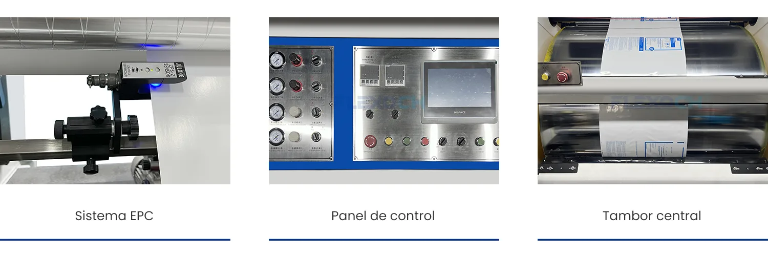 A diferencia de otros sistemas, la impresora tambor central ofrece un control uniforme del material durante todo el proceso, lo que resulta especialmente importante en la impresión de papel, cartón y materiales ligeros utilizados en envases modernos.