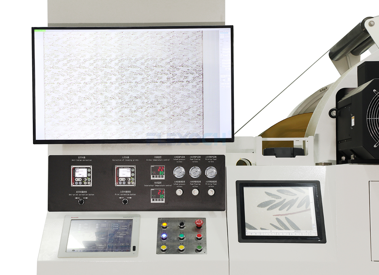 Utiliza servomotores para accionar directamente el cilindro portaplacas, eliminando errores por holgura de engranajes y logrando una precisión de registro de hasta ±0,1 mm. El sistema de compensación dinámica ajusta automáticamente la presión de impresión para adaptarse a diferentes gramajes de papel (12-350 g/m²)