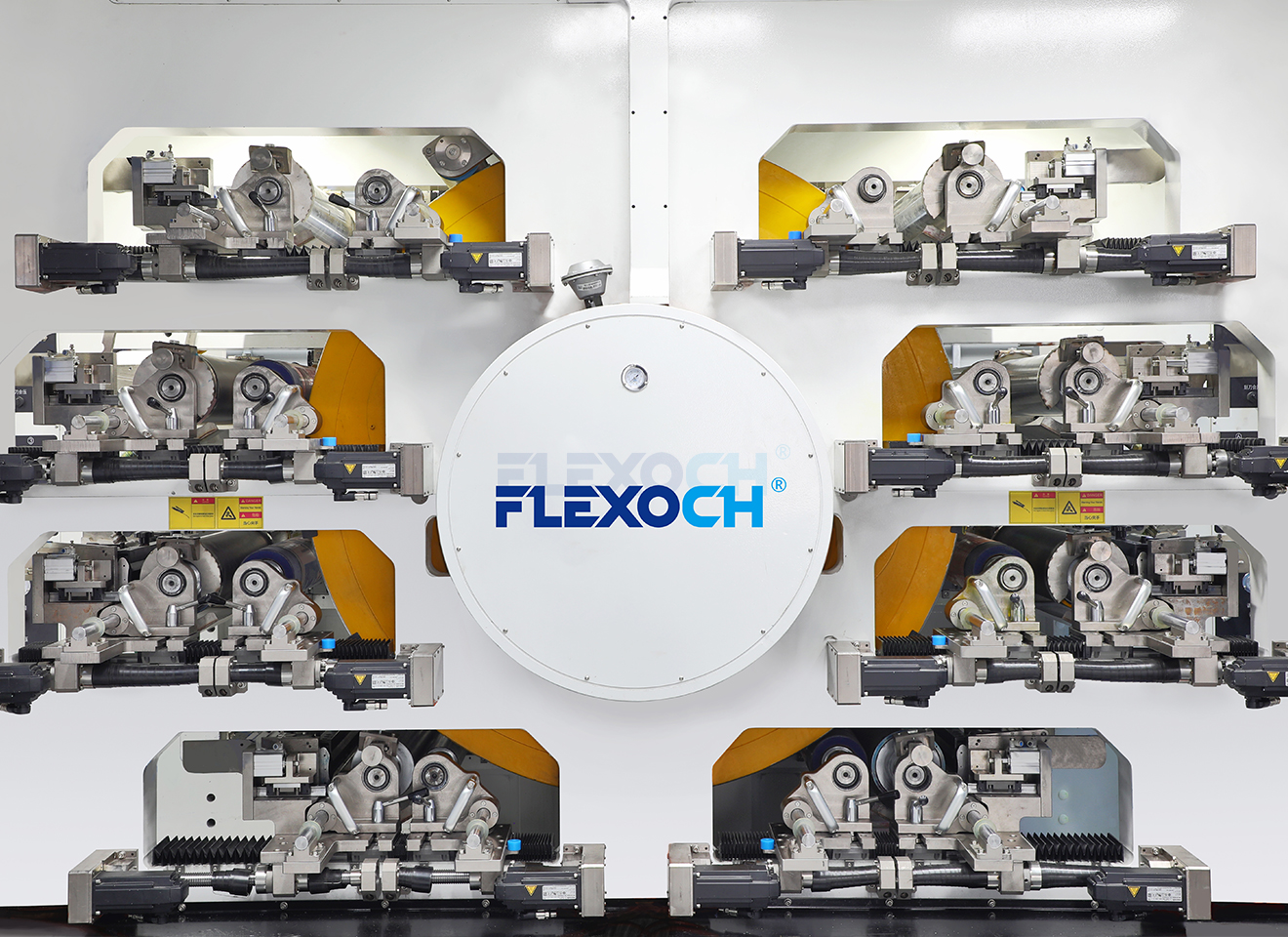 Alta precisión de registro: Accionamiento por servomotores independientes, eliminando errores de transmisión por engranajes. La precisión de registro se mantiene estable en ±0.1 mm, con puntos de imagen nítidos y superposición de colores precisa.