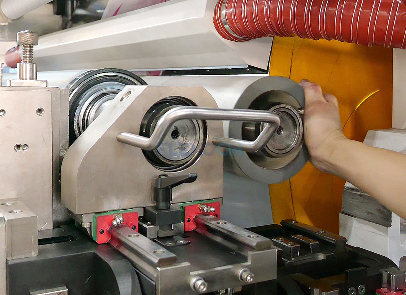 Funcionamiento a alta velocidad: Su estructura mecánica sólida permite una operación estable a velocidades de hasta 350 m/min, maximizando la producción por unidad de tiempo.