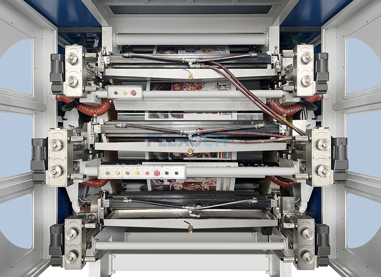 Amplia adaptabilidad a sustratos: Las impresoras flexo de tambor central son compatibles con films plásticos como BOPP, PET, PE, CPP, así como papel, aluminio y entre otros.